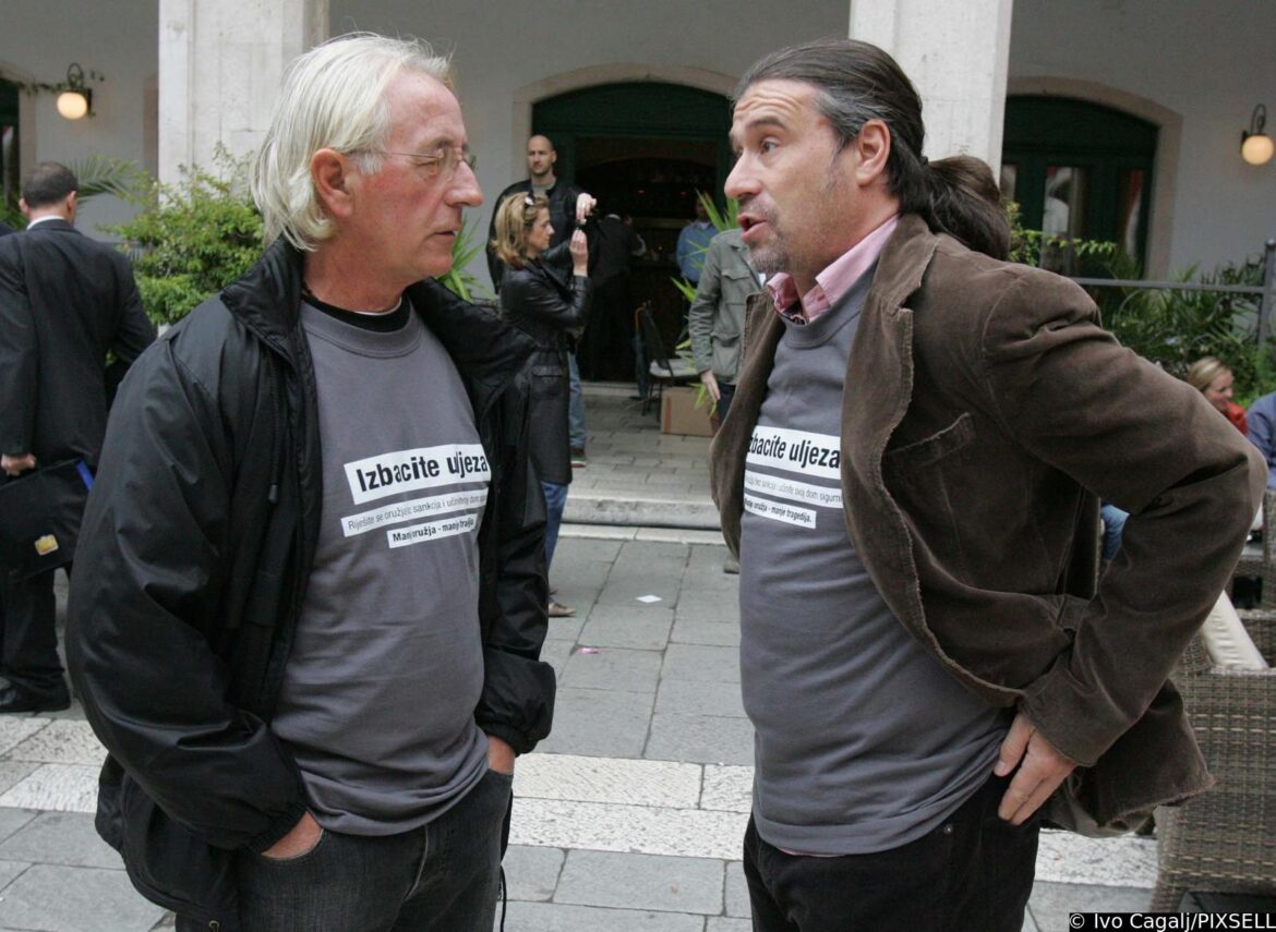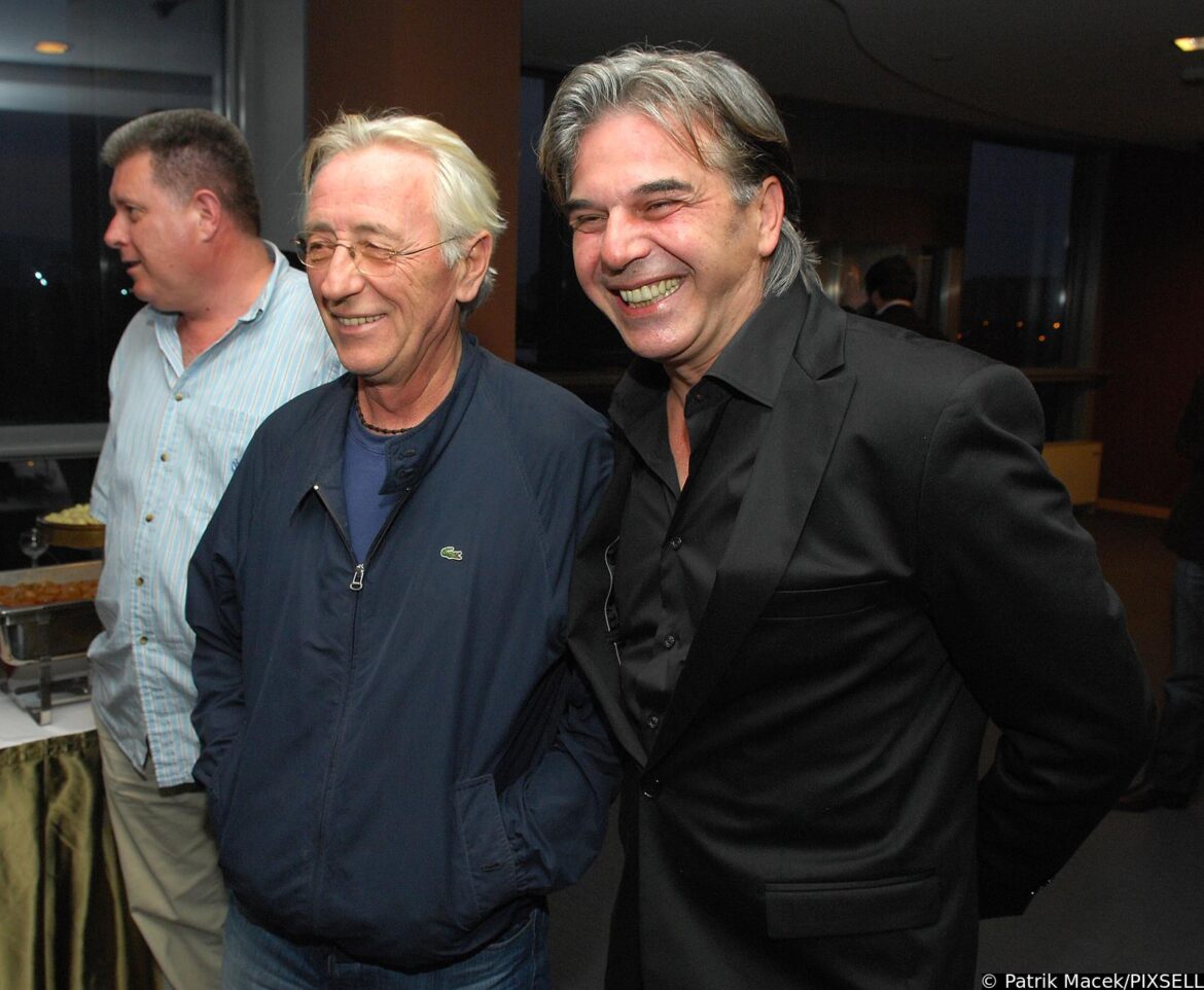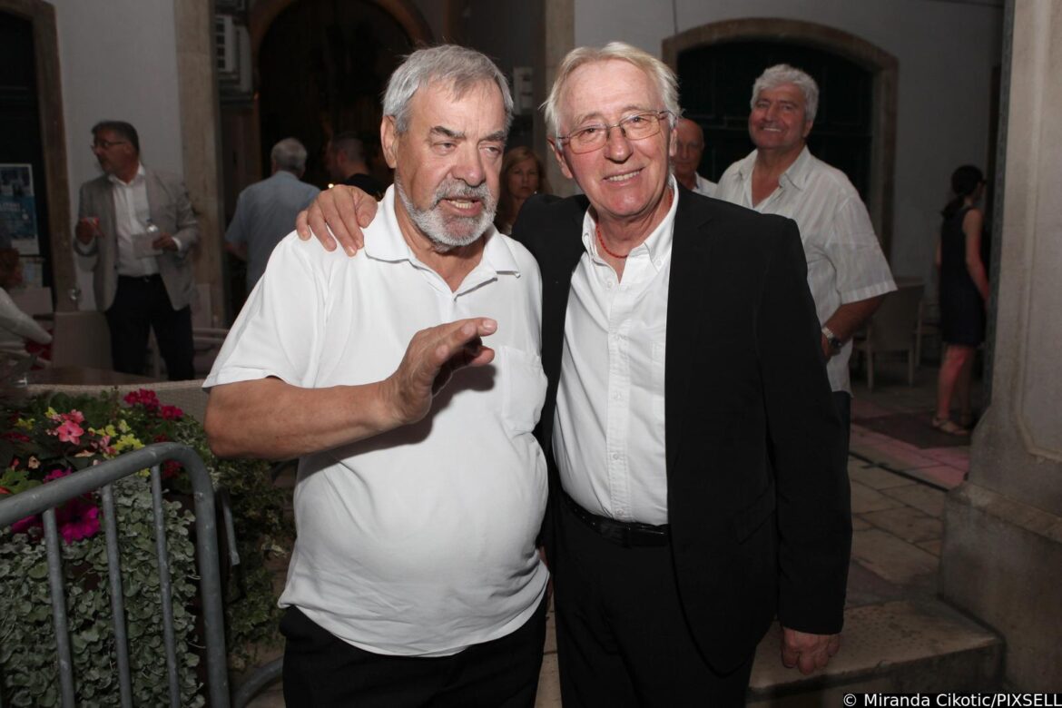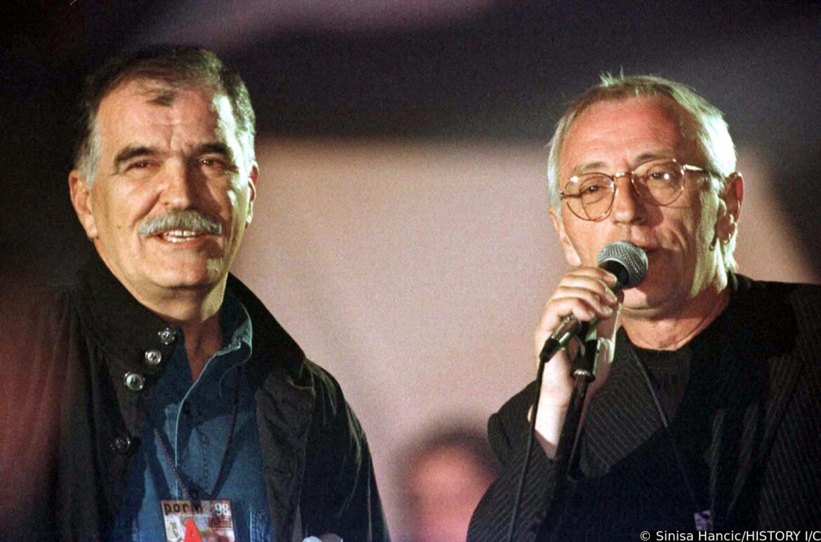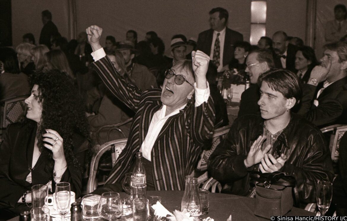 10.03.1995., Opatija, Hrvatska - U kristalnoj dvorani hotela Kvarner u Opatiji odrzan je Hrvatski televizijski festival unutar kojeg drugi po redu Porin te treci izbor hrvatske pjesme za Euroviziju, prvi puta pod nazivom Dora. Iscekujuci rezultate Dore, novinari Zoran Simic i Damir Strugar zabavljali su glazbenike Ninu Badric i Olivera Dragojevica internom "kladionicom". Photo: Sinisa Hancic/PIXSELL