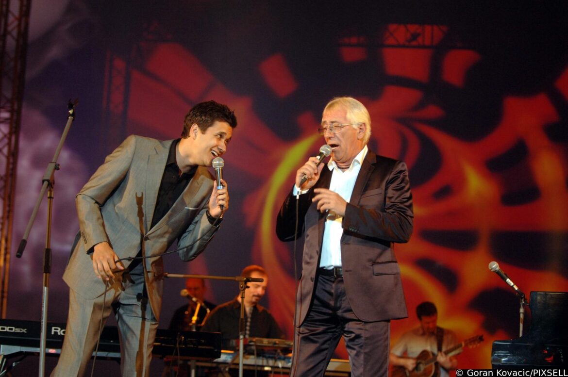 10.03.1995., Opatija, Hrvatska - U kristalnoj dvorani hotela Kvarner u Opatiji odrzan je Hrvatski televizijski festival unutar kojeg drugi po redu Porin te treci izbor hrvatske pjesme za Euroviziju, prvi puta pod nazivom Dora. Voditeljica Daniela Trbovic i pjevac Oliver Dragojevic. Photo: Sinisa Hancic/PIXSELL